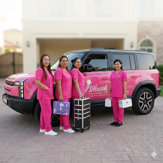 Ladies Salon Near Me, powered by SAbeauti Professional Ladies Salon, has been proudly providing home salon services across the UAE since 2017. We operate a dedicated fleet of Beauty Cars stationed across Dubai for fast arrival.